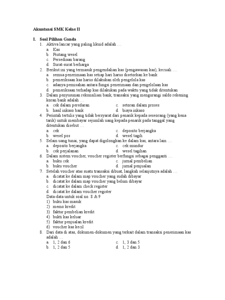 Contoh Soal Ujian Sekolah Smk Jurusan Akuntansi
