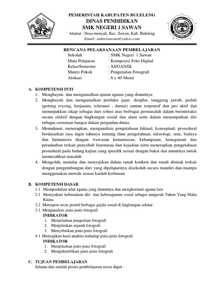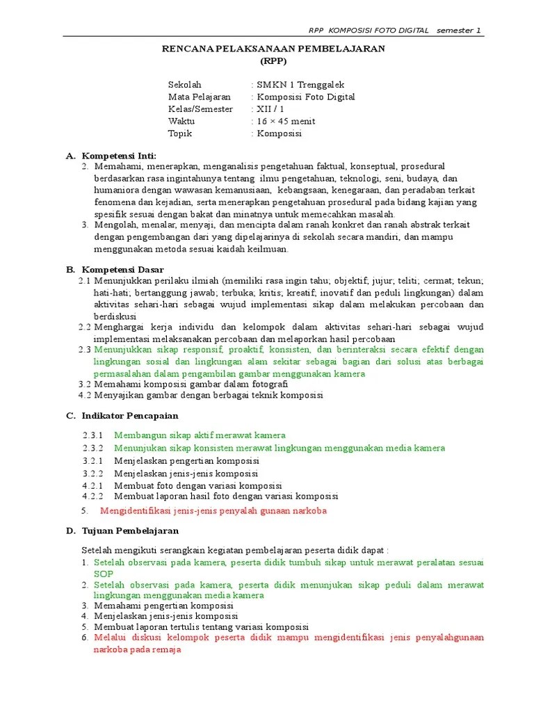 Kami dapatkan file ini dari Rekan yang kebetula menjadi IN Instruktur Nasional pada perhelatan kegiatan Guru Sasaran Kurikulum 2013 jenjang SMK Jurusan Multimedia dan bisa dikatakan ini layak digunakan untuk panduan membuat RPP komposisi foto digital kelas XII smk multimedia. TRIBUNPONTIANAKCOID - Halo adik-adik tetap semangat belajarnya ya di rumah.