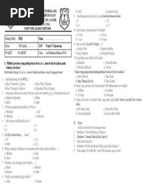 Contoh Soal Al Quran dan Hadist Pilihan Ganda dan Jawaban Oleh Soal Pelajaran Diposting pada 19042020 19042020 Anda dapat menuturkan Qoro-a Qoran Wa Quraanan قرأ قرءا وقرآنا. Beriman kepada Al-Quran termasuk rukun iman ketiga. Al-Quran berisi tentang kabar gembira dan peringatan Jawaban.