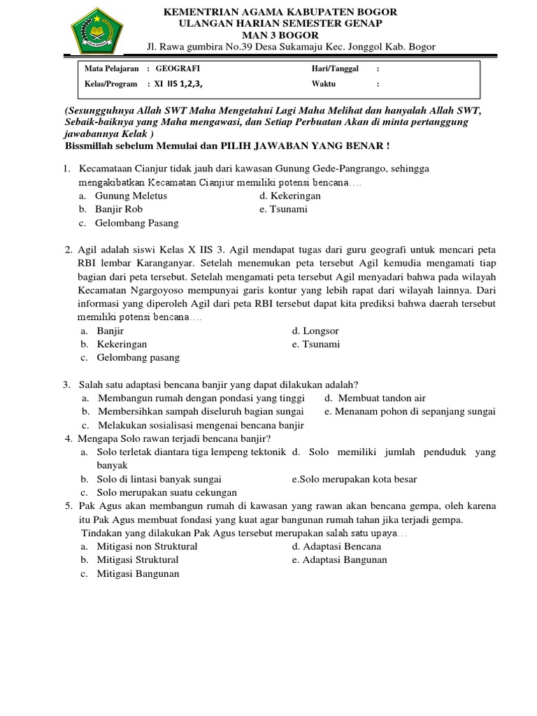 Contoh Soal Dan Jawaban Geografi Mitigasi Bencana Alam Ilmusosial Id