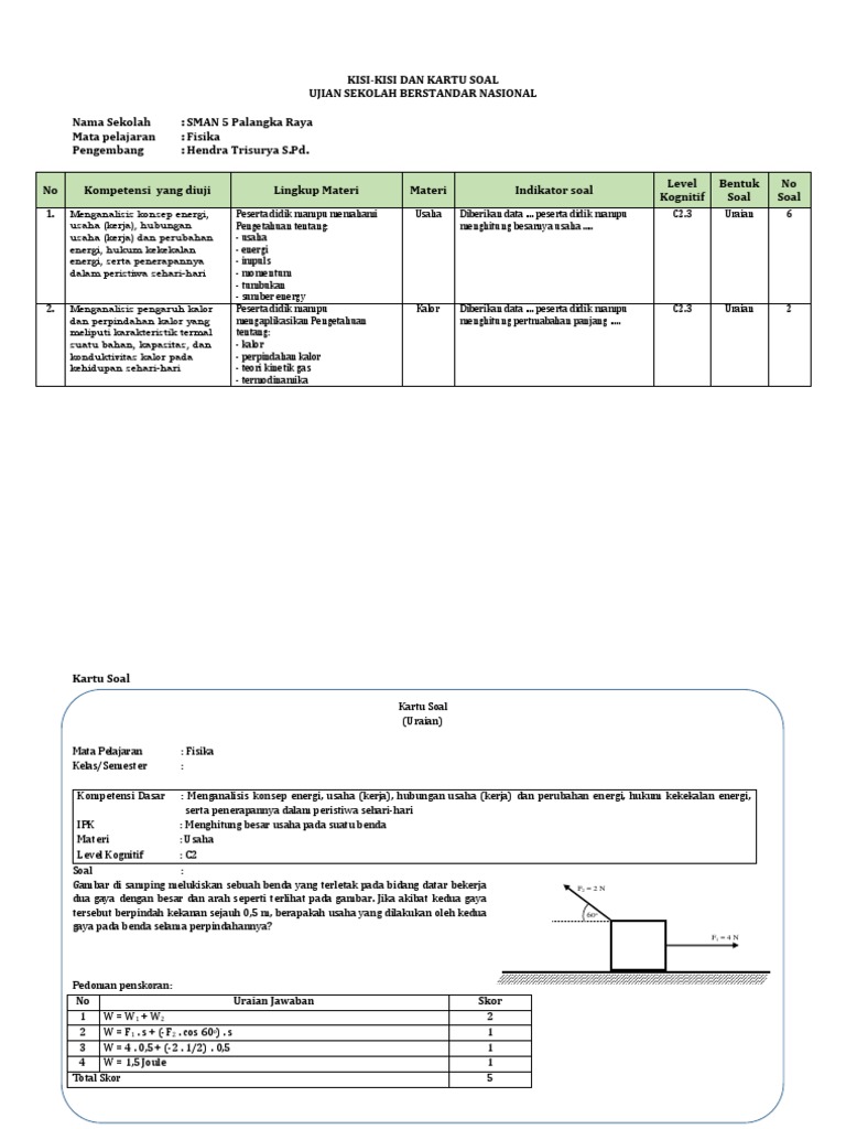 Kisi Kartu Soal Usbn 2018 Fisika Uraian Docx