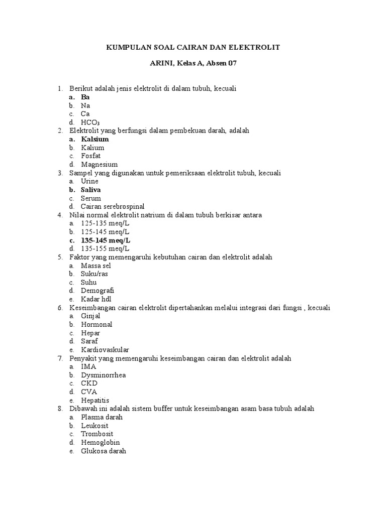 Doc Soal Cairan Dan Elektrolit Tubuh Liza Fitriani Academia Edu