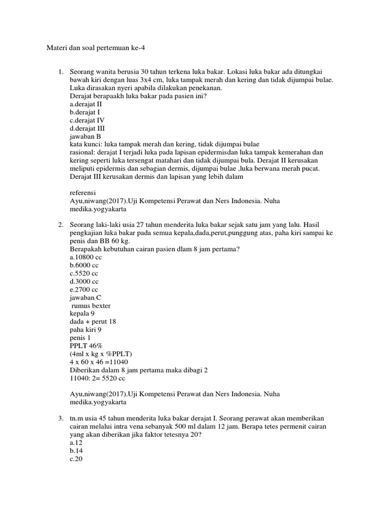 Contoh Soal Menghitung Kebutuhan Cairan Pada Luka Bakar Contoh Soal Terbaru