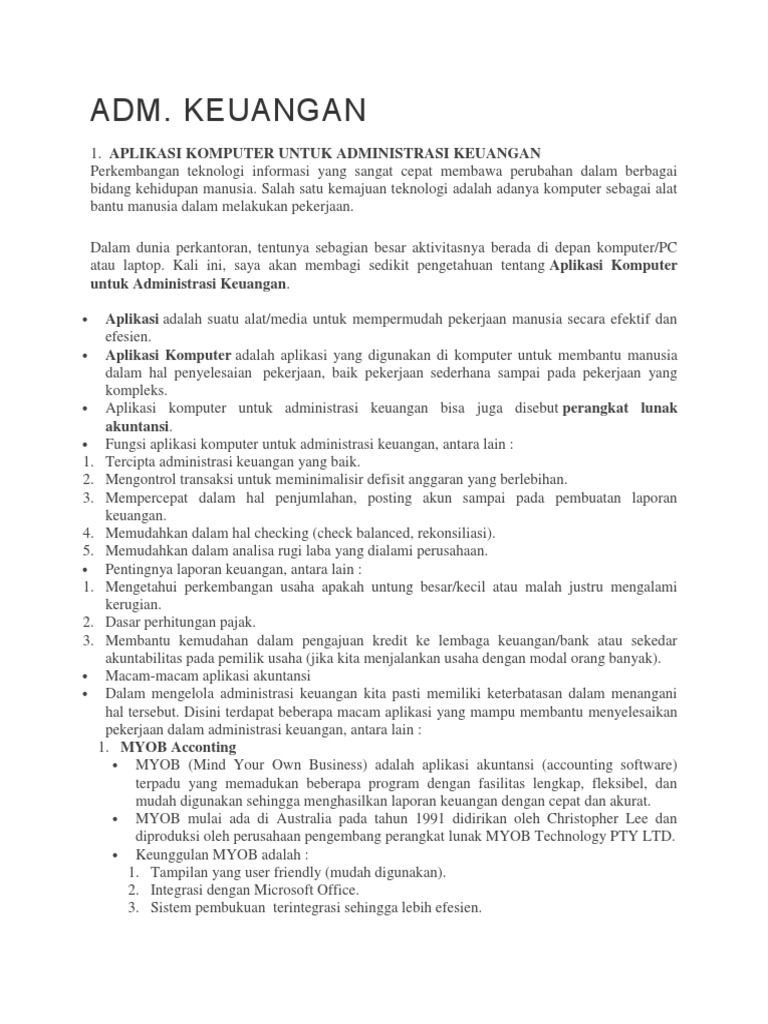 Doc Aplikasi Komputer Untuk Administrasi Keuangan Mustofa Jja Academia Edu