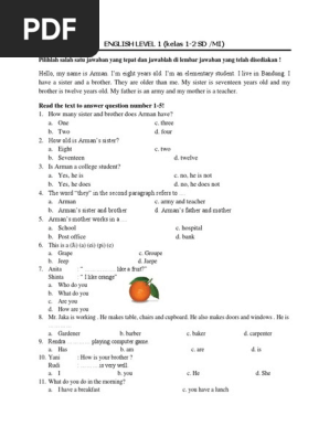 Kumpulan 200 Contoh Soal Bahasa Inggris Lengkap dengan Kunci Jawaban dan Pembahasan. 2 10 alya sheva albelda 2 11 naomi tasya putri ariyanto 2 12 attariq rizkyano zudhan 2 13 nasya faradilla yusuf 2 14 sefia salsabila farah dimas 2. Soal olimpiade bahasa inggris level 1.