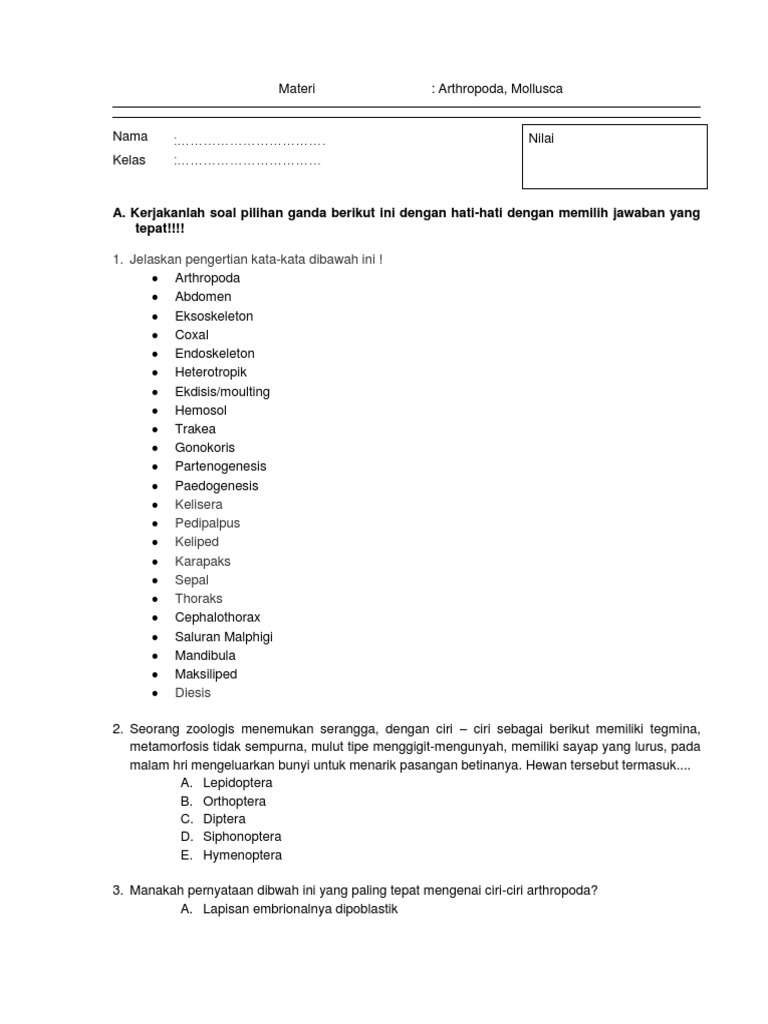 Soal Biologi Animalia Invertebrata Kunci Jawaban 50 Pilgan Muttaqin Id